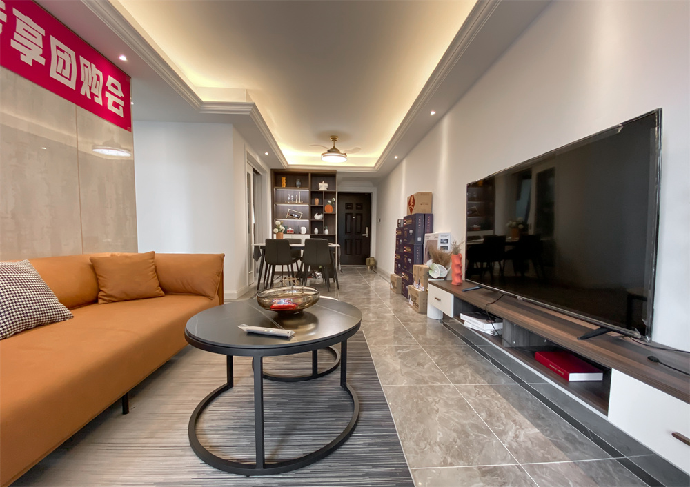 客廳的整體顏色呈中性暖色調(diào),即便是簡(jiǎn)單的裝修中也能透露出家的溫暖。因?yàn)榭蛷d的整體氛圍偏向于安靜沉穩(wěn),所以精心選擇的橙色沙發(fā),于色彩上增加跳脫感,造型簡(jiǎn)潔,線條流暢的家具組合搭配,營(yíng)造出穩(wěn)定、協(xié)調(diào)、溫馨的空間感受,滿足現(xiàn)代年輕家庭的輕奢需求。