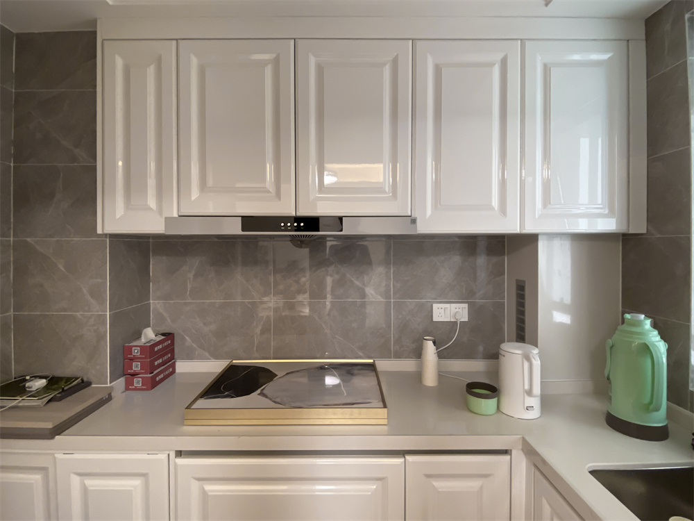 廚房是L型的櫥柜布局,切菜區(qū)、臺(tái)盆區(qū)、烹飪區(qū)形成一條動(dòng)線,讓烹飪不再手忙腳亂。芬蘭白膜壓櫥柜門板,如奶油般的質(zhì)感更加細(xì)膩?zhàn)匀?。吊柜?yīng)當(dāng)與臺(tái)面保持距離,避免因?yàn)榫嚯x過近影響使用效果。