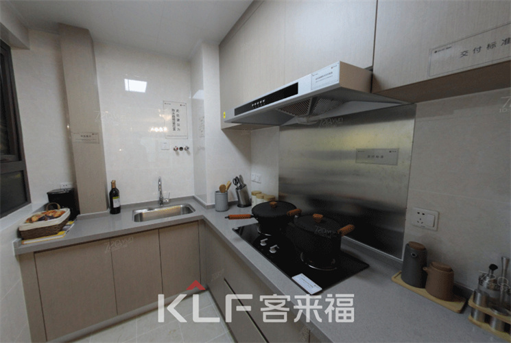 在廚房空間中,我們使用了原木色調(diào)櫥柜搭配白色瓷磚墻面,整個(gè)空間去繁從精,讓舒適、婉約的氣韻慢慢融入,讓下廚成為優(yōu)雅的范式,簡約之余又注入了東方韻味的意境。