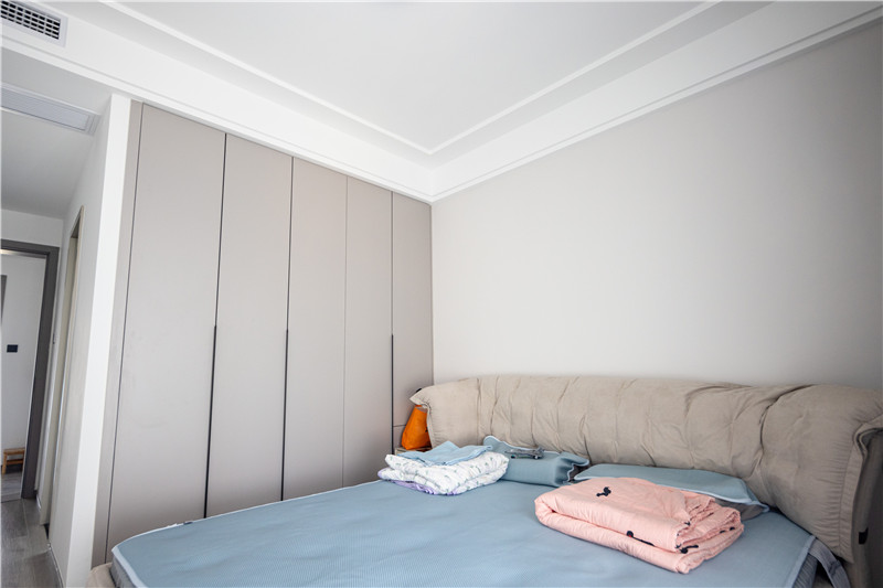 屋主根據(jù)居住者的需求不同,在每個(gè)房間的設(shè)計(jì)上都有所不同。主臥主要以睡眠區(qū)為主,在靠墻的位置設(shè)計(jì)了到頂衣柜,用于收納日常的衣物,整體非常簡(jiǎn)潔。