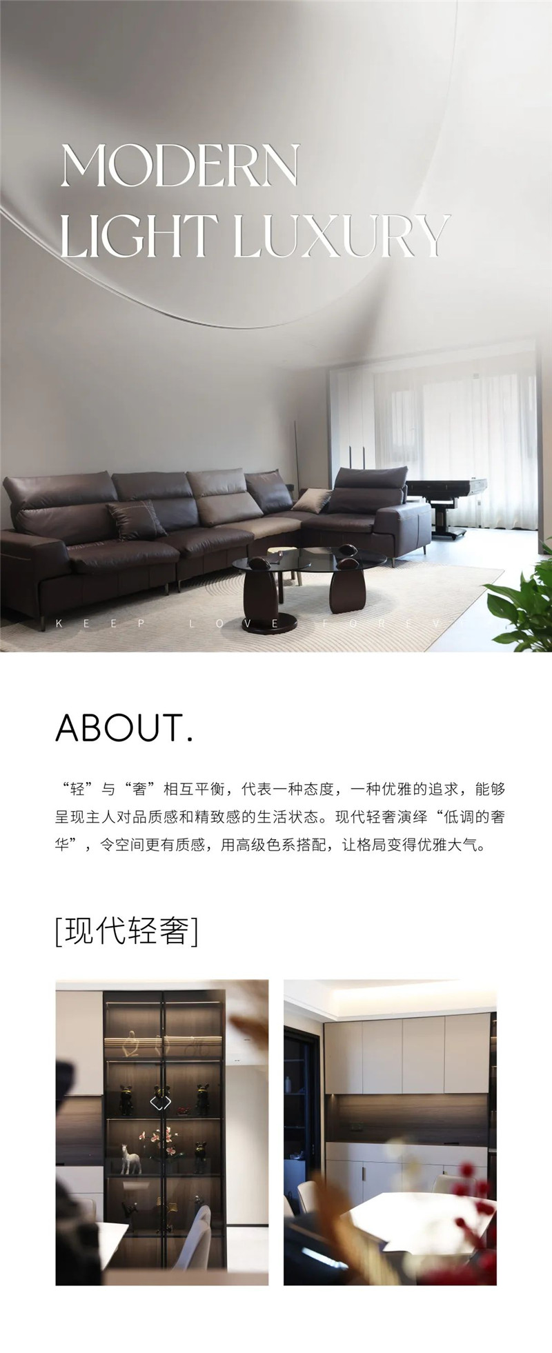 該全屋案例設(shè)計(jì),風(fēng)格隸屬于現(xiàn)代輕奢,充分發(fā)揮客廳“門面擔(dān)當(dāng)”地位,呈現(xiàn)高級(jí)、大氣客廳,但在臥室、廚房等空間更注重實(shí)用功能,體現(xiàn)出實(shí)用主義者與顏值至上的平衡。