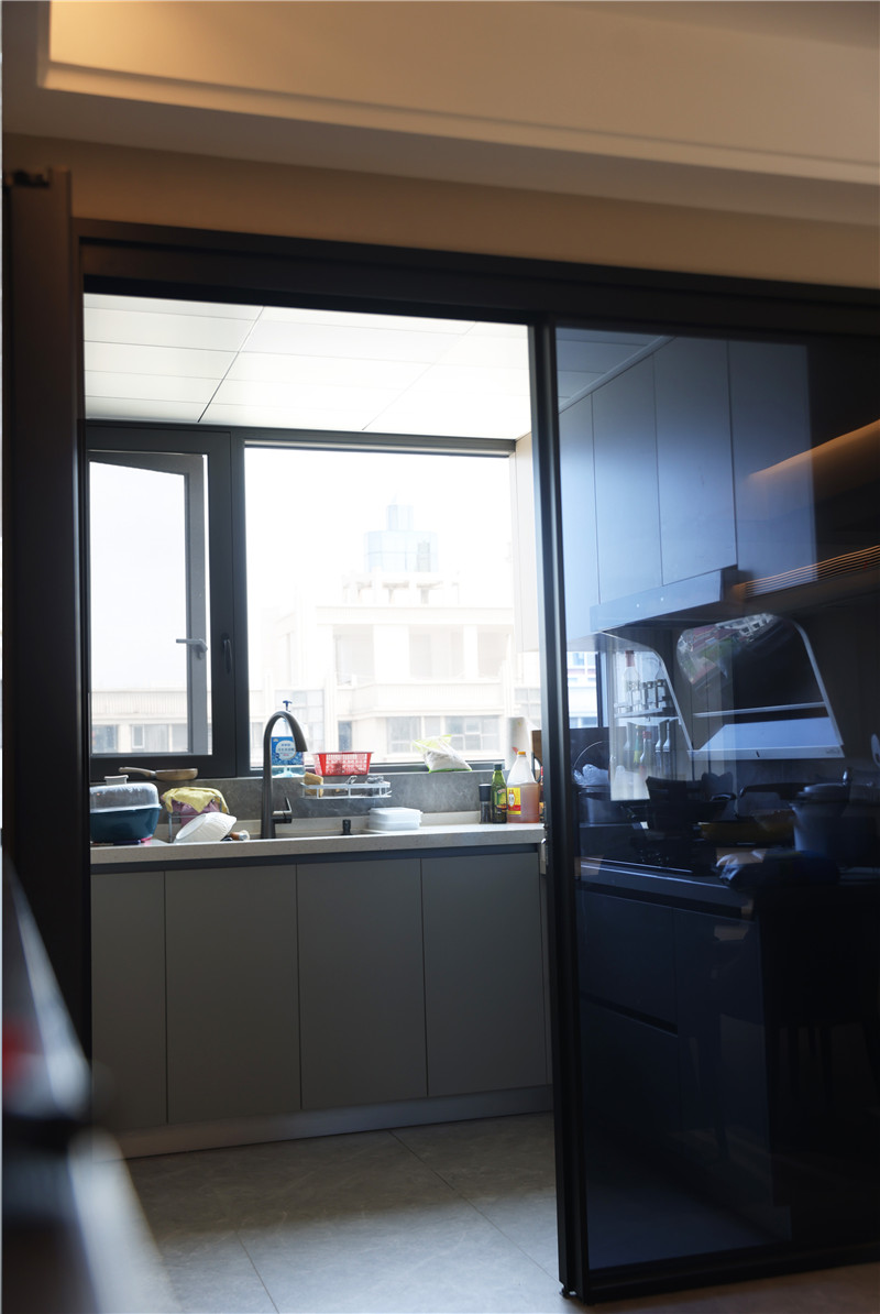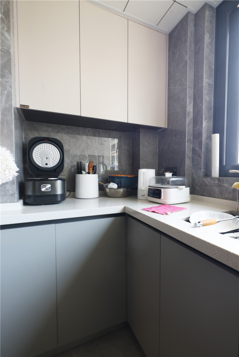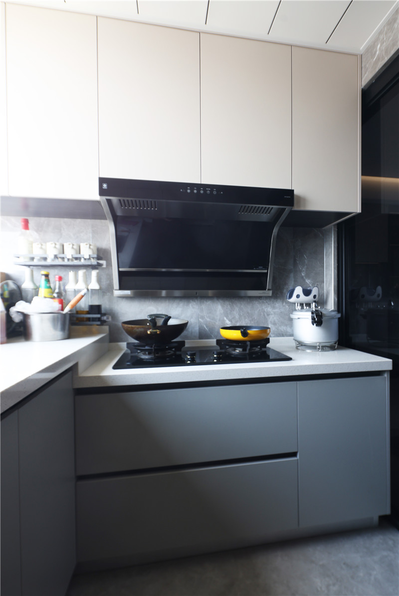 無拉手設(shè)計(jì)、高低臺(tái)面、擋水條等,該廚房設(shè)計(jì)遵從著實(shí)用、簡(jiǎn)潔理念,打造幸福美好生活。
