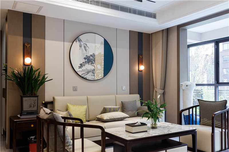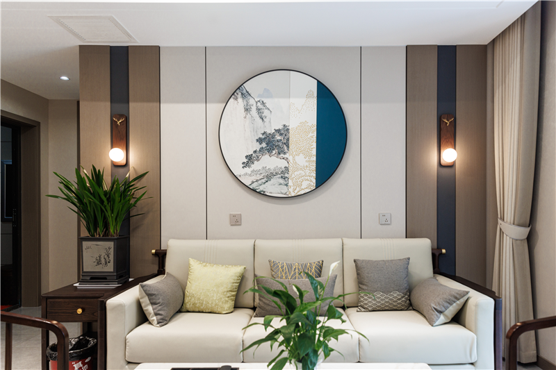 恰到好處的生活是別樣的精致,進到客廳,無主燈設計簡約舒適;新中式的特點讓客廳精致又不會顯得繁雜,中式元素干凈利落的融入,讓整個空間也成為一道風景。