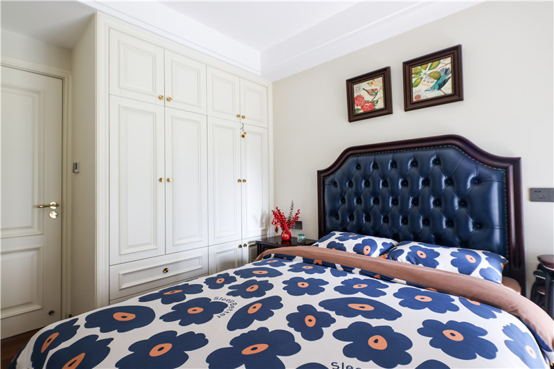 次臥:次臥做了組頂天立地式柜體,極光白與芬蘭白相互映襯,與床體深調(diào)互補(bǔ),突出美式的高雅,這樣整潔自然的家居環(huán)境,讓人心動!