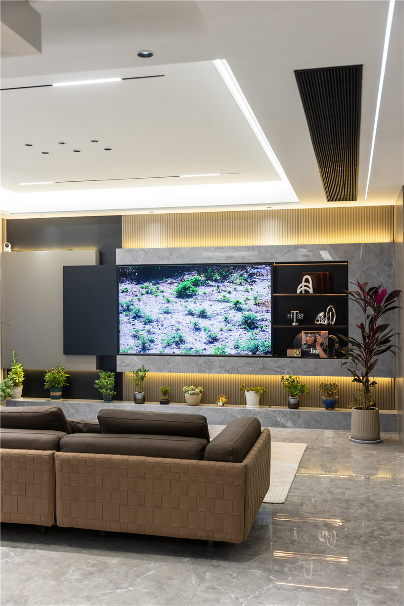 客廳高級構(gòu)造,以創(chuàng)意、新意展現(xiàn)定制魅力。整體開放式設(shè)計,以無主燈設(shè)計突顯空間氛圍感,氣質(zhì)顯露。