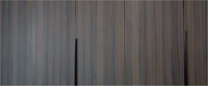 一側(cè)到頂柜作為衣物臨時收納區(qū),進出掛穿方便;中部掏空放換鞋凳,邊上掏空預(yù)留放小物件,配合以無拉手地柜、頂柜,方便且收納力強。