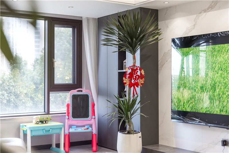 客來(lái)福家居以環(huán)保水漆工藝配合以層次色彩,打造出安靜純粹的美學(xué)空間。