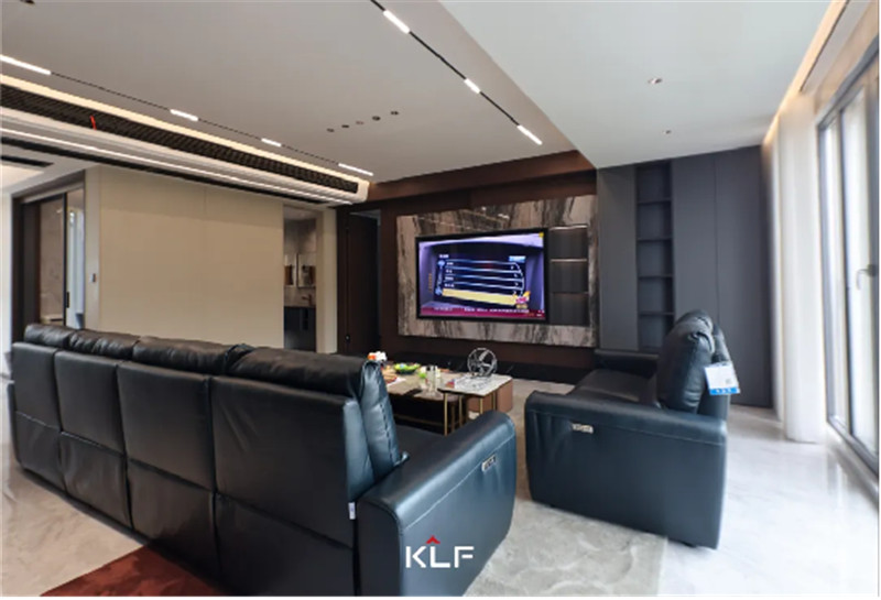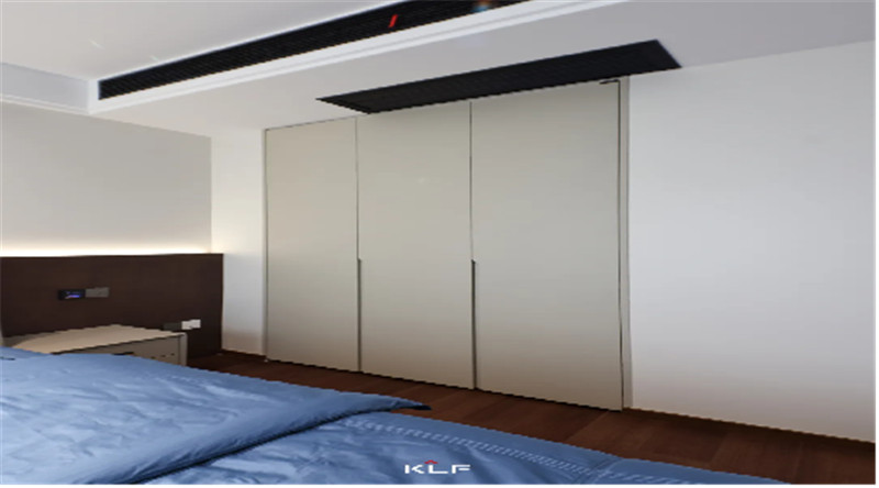 房門入口做隱形處理,與電視背景墻融為一體,空間更流暢通透,感官上更舒適自由。