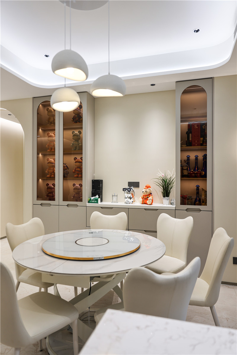 餐邊柜延續(xù)客廳弧形設(shè)計(jì)