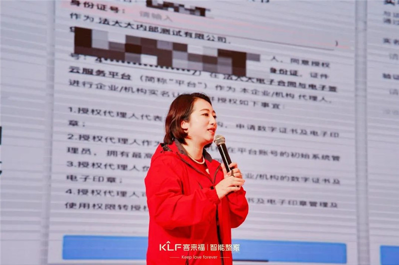 本次大會,客來福智能整家副總梅杰與客來福IT部經(jīng)理胡斌為經(jīng)銷商電子合同作詳細說明。隨后,運營部中部戰(zhàn)區(qū)總監(jiān)姚磊講解315活動方案與執(zhí)行方案等相關政策??蛠砀v年來315活動推出多種優(yōu)惠套餐,為用戶帶去高性價比的整家定制選擇。本次315活動將更加全面的發(fā)揮出品牌效應與企業(yè)實力,全力為一線經(jīng)銷商們助力。