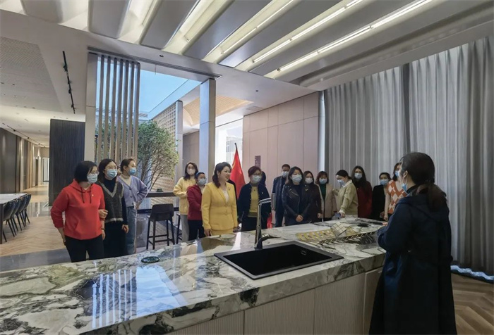 在魏總裁的帶領(lǐng)下,考察團首先來到客來福第十二代高定展廳。在展廳內(nèi),幸福路小學校長一行近距離接觸了客來福的全新系列產(chǎn)品,對于智能化帶給客來福的改變有了更為深入的了解和認識。