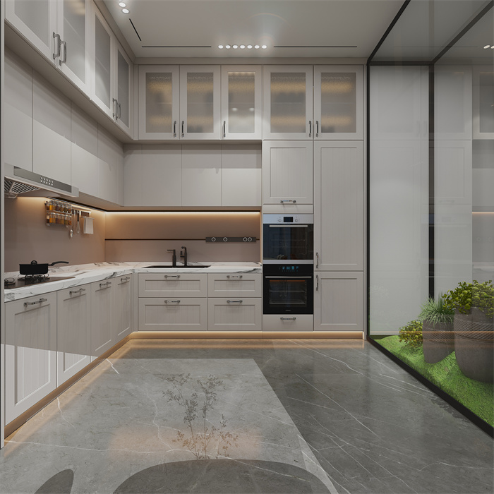 ?個舒適的廚房可以給我們做飯時帶來愉悅感,家里的廚房是反映?活?息的地?。U型的簡潔的動線設計和明確的功能區(qū)劃分使得整個烹飪變得有條不紊。 無把?的櫥柜造型簡潔,美觀大氣,其時尚的氣質滿?現代年輕?的審美需求。