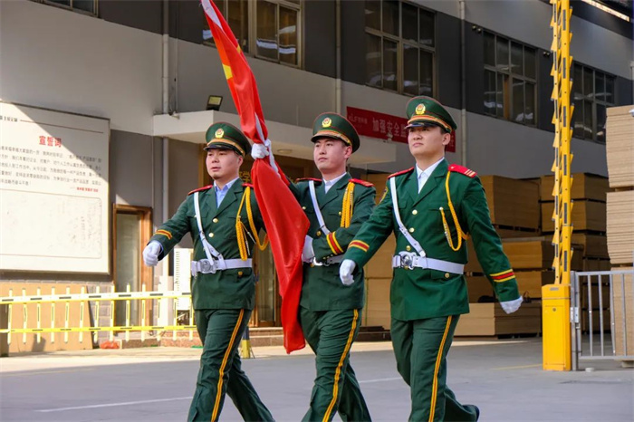 客來福家人們迎著燦爛陽光整齊的排列在場地中央,整齊的隊列、昂揚(yáng)的士氣,在全場的矚目下,大會拉開帷幕。國旗護(hù)衛(wèi)隊昂首挺胸,邁著莊重沉穩(wěn)的步伐,走向升旗臺。