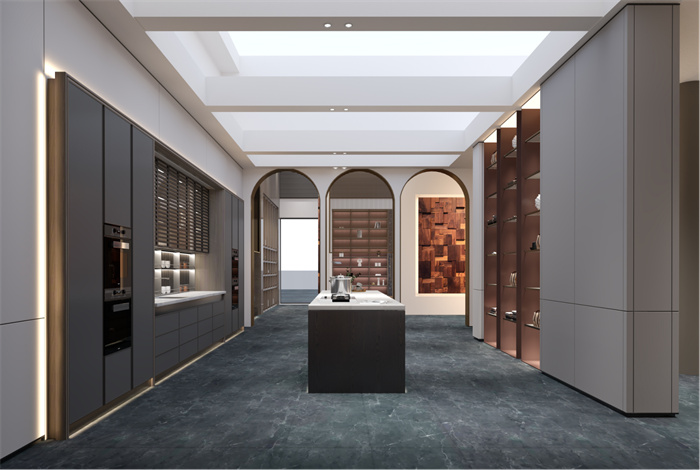 櫥柜+智能島臺(tái)的空間布局,既節(jié)省了空間,也優(yōu)化了家庭動(dòng)線。廚房一半采用了嵌入式柜體,考究的布局和純實(shí)木門讓餐廚空間簡(jiǎn)約大氣。島臺(tái)與烹飪區(qū)平行,空間明朗、清新自然。