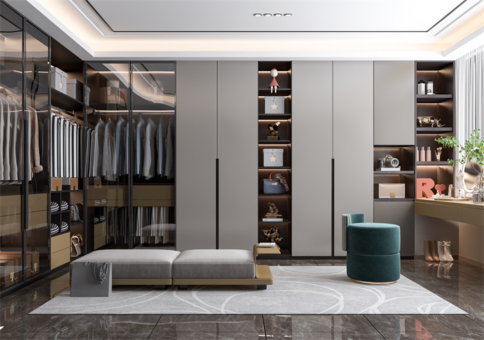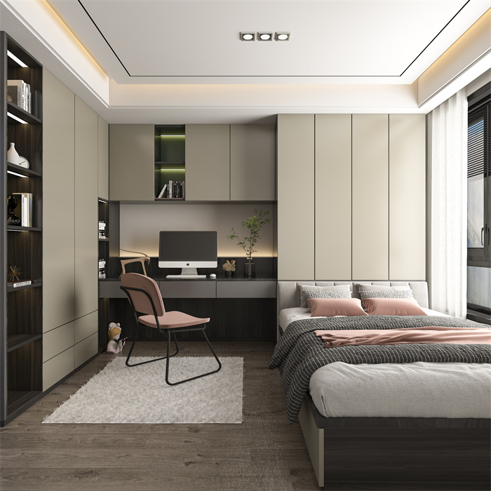 像電視柜的整體抬高設計,讓業(yè)主在家即能舒適看?。粺o把手柜門設計,簡潔利落,增強視覺美感;衣柜的升降拉桿設計,滿足家庭不同成員的需求。