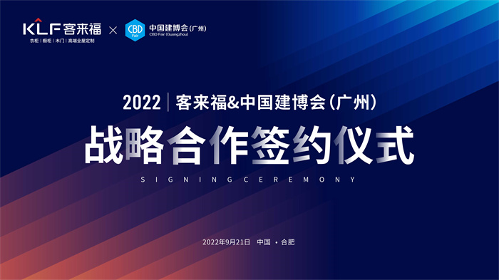 2022年9月21日,客來福家居與中國建博會(廣州)正式宣布達(dá)成重要戰(zhàn)略合作,雙方就家居行業(yè)發(fā)展趨勢及未來發(fā)展力進(jìn)行深入探討,表達(dá)出協(xié)同創(chuàng)新、共贏未來的合作意愿。