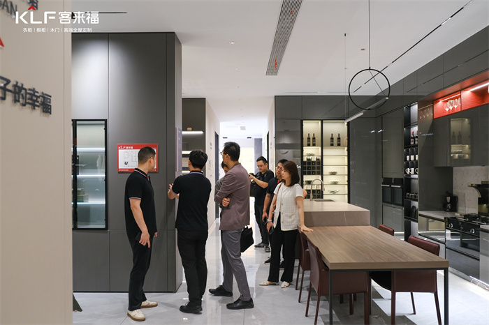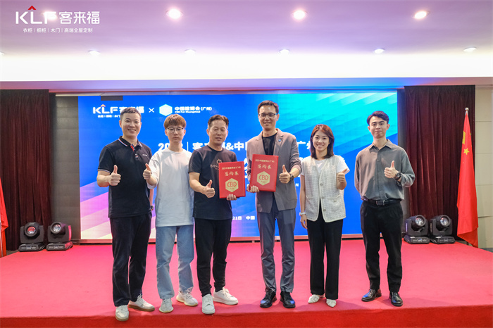 中國建博會(廣州)展商營銷負(fù)責(zé)人陳鵬漢、中國建博會(廣州)定制家居負(fù)責(zé)人方曉晗、中國建博會(廣州)何皓楠、客來福家居董事長尹其宏、客來福營銷決策委員會招商副總童偉、客來福首席品牌官尹邵杰等人參與了儀式。