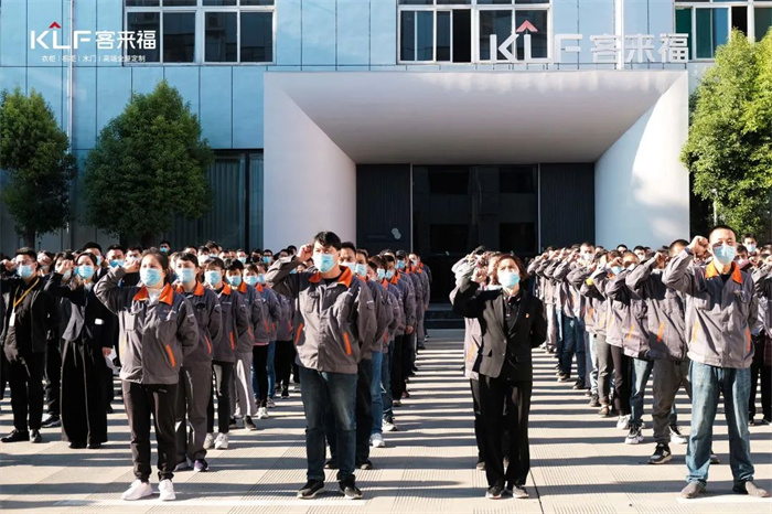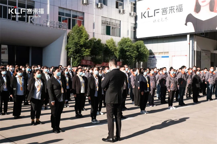 首先進(jìn)行的是升國旗奏國歌儀式,客來福家居作為民族企業(yè),始終堅決地將愛國擁黨作為企業(yè)發(fā)展的首位。在飄揚的旗幟下,客來福全員進(jìn)行企業(yè)價值觀宣讀,客來福家人們將通過不懈努力和精進(jìn)合作,實現(xiàn)品牌發(fā)展的美好愿景。