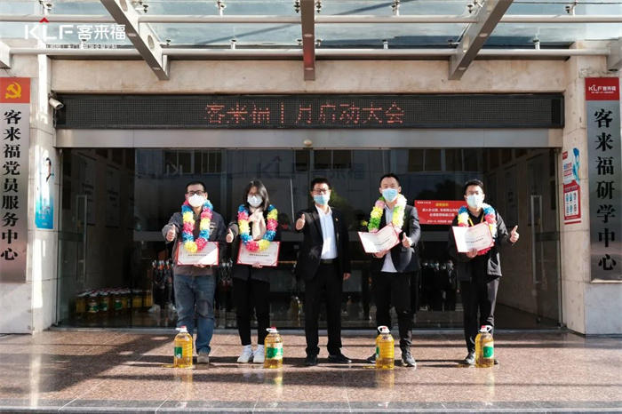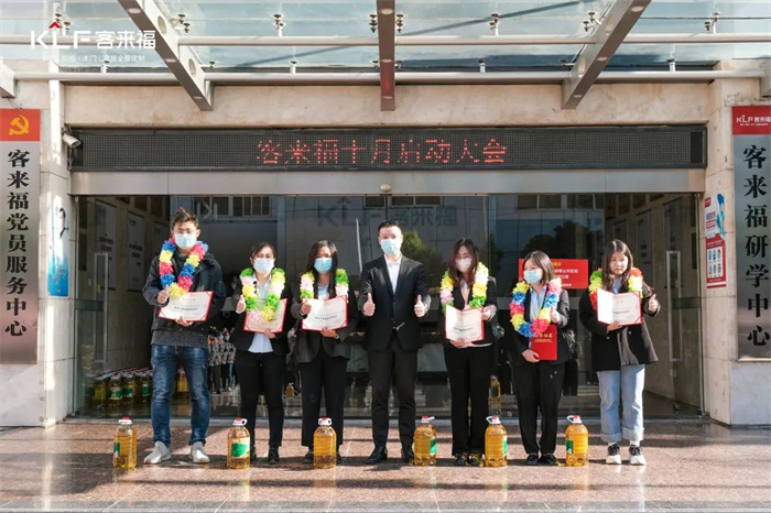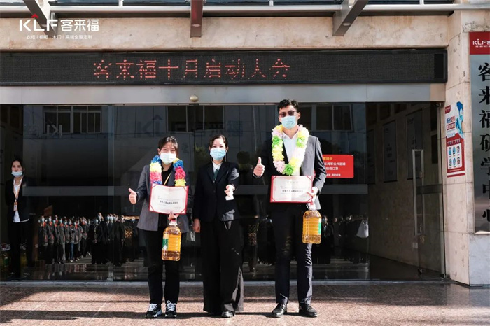 在客來福的平臺上,有付出,就一定會有收獲。本次啟動大會上還對九月取得優(yōu)秀成績的員工們進(jìn)行了表彰,向其頒發(fā)榮譽(yù)證書以及豐厚的禮品、獎金等。
