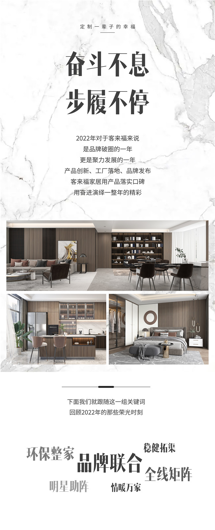 客來福家居致力于做更懂中國家庭的定制家居品牌,愿為更多家庭實現(xiàn)一體化定制。2022年,客來福家居不斷與芝華仕、海爾智家、方太等家居品牌簽約達成深度合作,未來將會為更多消費者帶來省心省力的全屋高端定制方案。(查看原文)