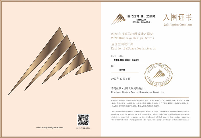 崢嶸歲月,初心不改。客來福家居在2022年榮獲“中國家居綜合實力100強品牌”稱號,其「墨奈系列」入選《2021-2022中國家居行業(yè)精品年鑒》,「客來?!じ镂铩?/span>KOLON卡倫系列」入圍“HimalayaDesignAwards喜馬拉雅·設計之巔”居住空間設計獎。(查看原文)