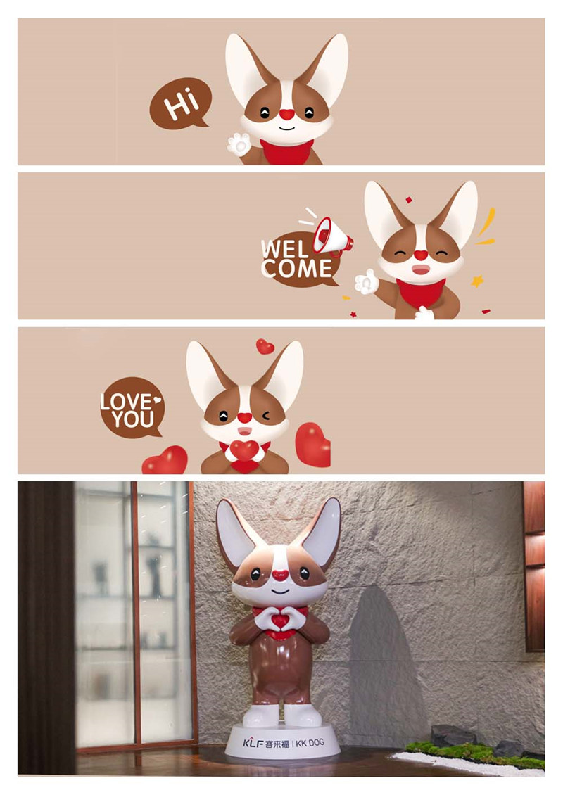 它的名字取自“KLF”的首字母”K“,形象中愛心、^等元素添加設計靈感來源于客來福“締造幸福家居生活,讓愛無界”的使命,傳遞出客來?!靶腋!钡奈幕砟?。