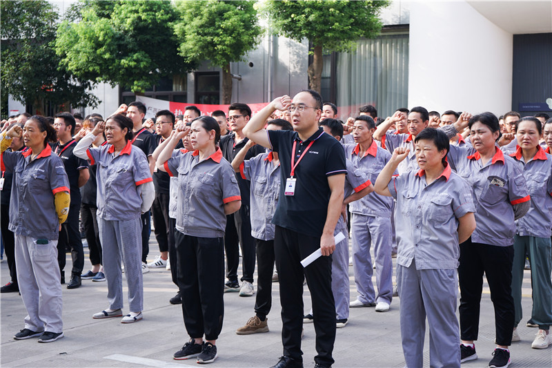 首先進(jìn)行莊嚴(yán)的升國(guó)旗奏國(guó)歌儀式,伴隨著國(guó)歌,國(guó)旗緩緩升起,客來(lái)福全體員工行注目禮,有國(guó)才有家,國(guó)是千萬(wàn)家。隨后全體員工宣讀企業(yè)文化,在整齊、響亮的宣誓中,鄭重拉開(kāi)啟動(dòng)大會(huì)序幕。