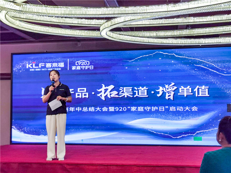 21日下午,在主持人的短暫暖場(chǎng)后,客來(lái)福家居總裁魏金華女士致辭并提到:幸福是客來(lái)福的品牌基因,“920家庭守護(hù)日”是客來(lái)福的幸福節(jié),是為了惠及更多家庭。而啟動(dòng)會(huì)我們共聚一堂,可集中探討學(xué)習(xí),從而更好開(kāi)拓市場(chǎng),滿足用戶需求。