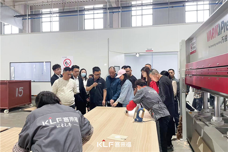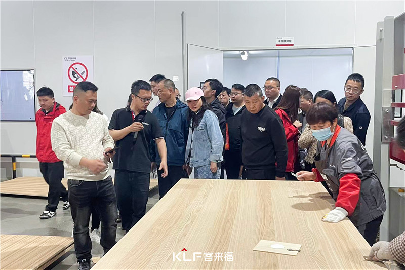 一行人走進(jìn)新橋4.0水漆智能產(chǎn)業(yè)園,2023年工廠正式投產(chǎn),意味著客來福生產(chǎn)體系的完善,展現(xiàn)出客來福下一個(gè)五年的“智能化”前景。