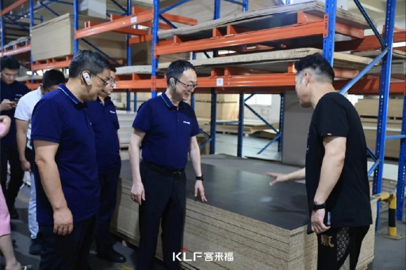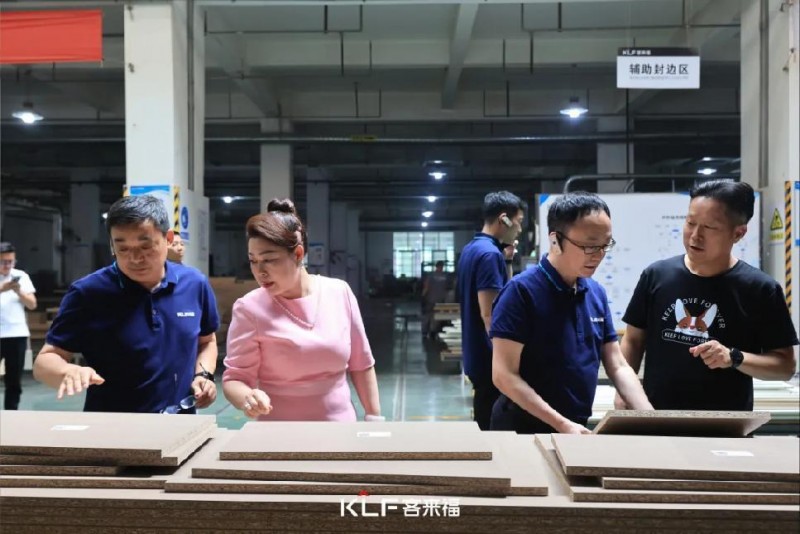 通過實地考察車間運轉狀況,領導們對客來福嚴謹專業(yè)的板材制作工藝流程和系統(tǒng)化、標準化的車間生產流程進行了詳盡了解。