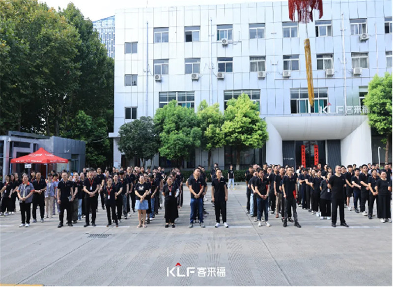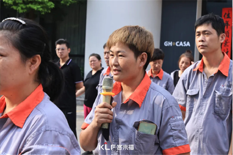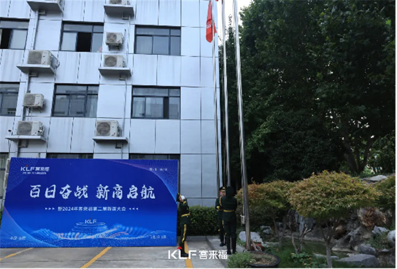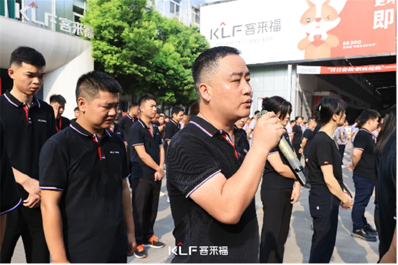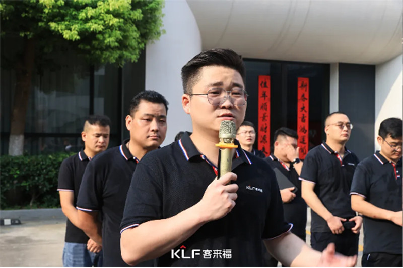 在經(jīng)過簡單的整隊(duì)后,各中心負(fù)責(zé)人匯報(bào)人員到場情況。隨后,升國旗奏國歌儀式正式拉開大會(huì)序幕。在飄揚(yáng)的旗幟下,全體員工進(jìn)行企業(yè)價(jià)值觀宣讀,展現(xiàn)了客來福家人們斗志昂揚(yáng)的精神面貌。