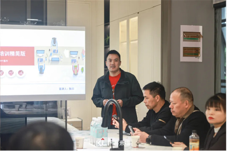 會議伊始,客來福家居尹總發(fā)表致辭?;谛袠I(yè)趨勢,市場現(xiàn)狀及品牌定位,尹總明晰2024年戰(zhàn)略規(guī)劃,表示客來福家居未來將繼續(xù)從流量賦能、產(chǎn)品賦能、智造賦能、設計賦能、活動賦能、新商賦能等六個方面合力進擊,助力門店破局突圍,助推品牌新發(fā)展。同時,尹總鼓勵經(jīng)銷商以擁抱新媒體、異業(yè)聯(lián)盟、深耕小區(qū)作為引流拓客的核心渠道,挖掘存量市場,突破賽道重圍。