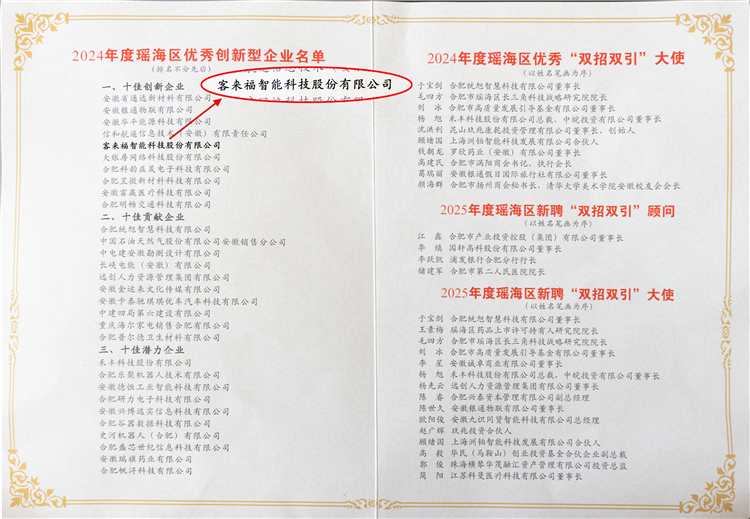 2月13日,2025年瑤海區(qū)縱深推進“三大行動”加快發(fā)展新質(zhì)生產(chǎn)力大會隆重召開。會上,安徽客來福智能科技股份有限公司憑借卓越的創(chuàng)新能力與突出貢獻,榮膺2024年度“瑤海區(qū)優(yōu)秀創(chuàng)新型企業(yè)”殊榮。