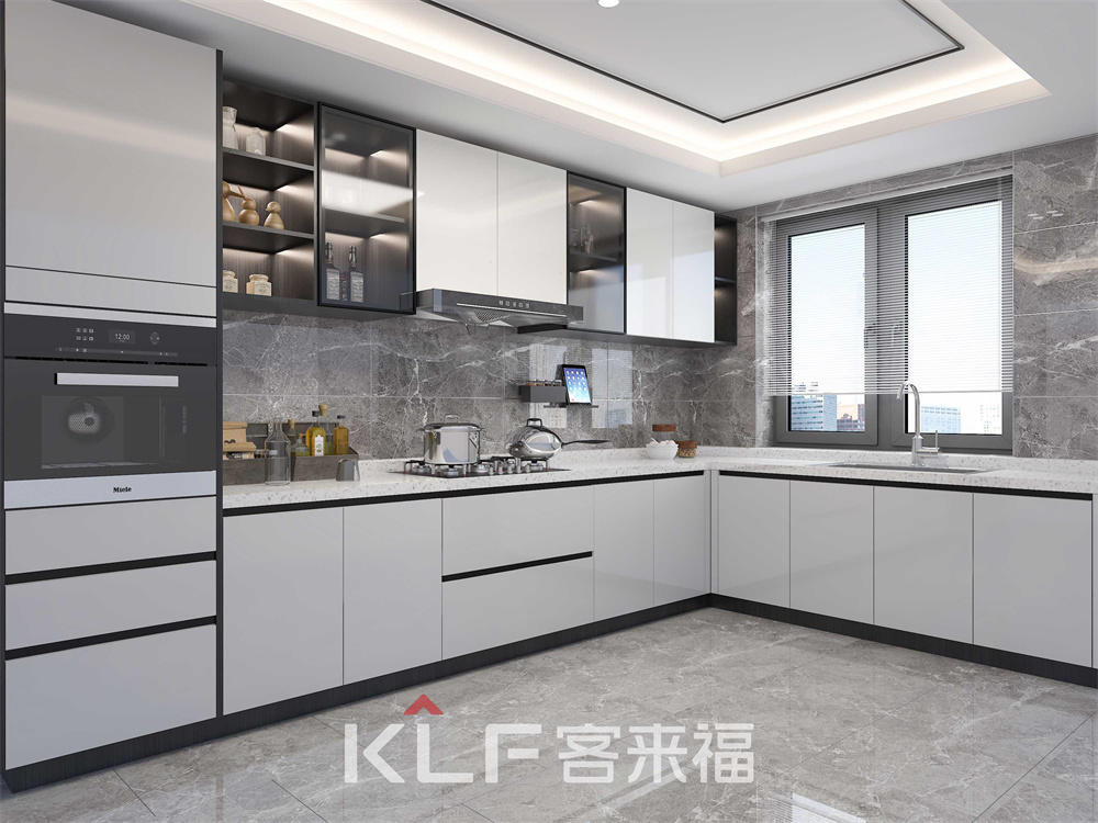 根據(jù)您喜愛的墻磚的顏色來(lái)變化柜體顏色,真正做到根據(jù)不同的喜好定制不同的家居。L型開放式廚房空間,擺脫擁擠迎接美好生活。