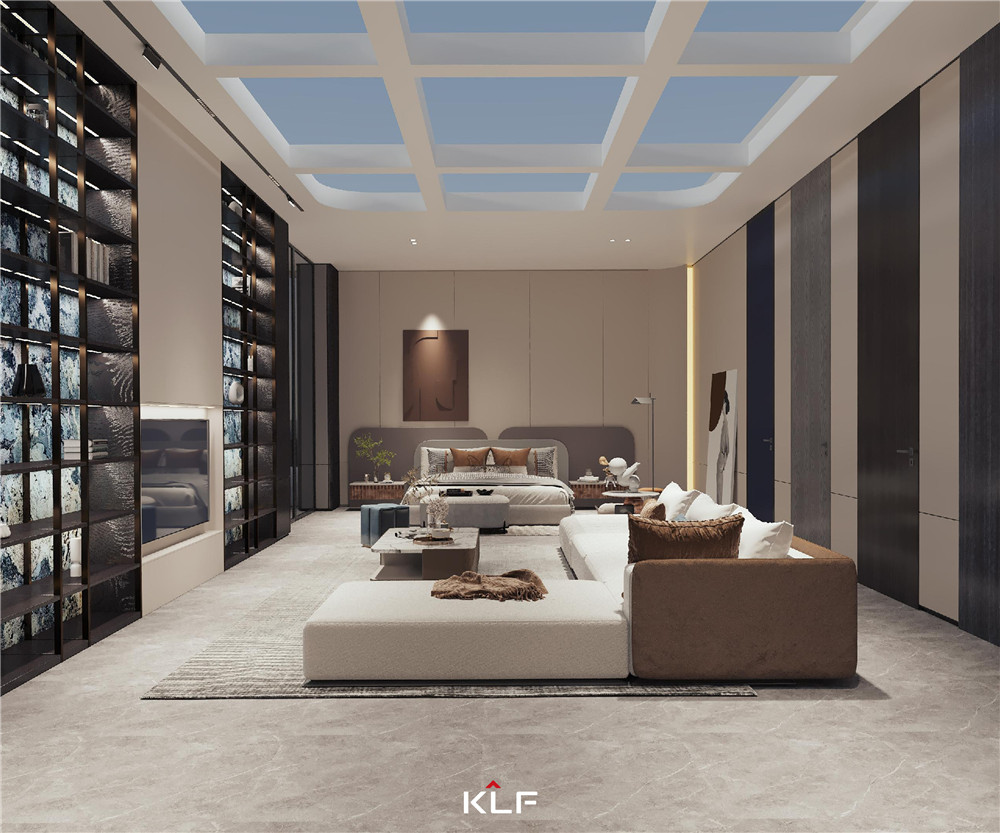 衣帽間采用時尚科技的電動平移巴士門,于細節(jié)之處彰顯魅力;將衣柜分為疊放區(qū)、懸掛區(qū)和抽拉區(qū),分功能存儲提高生活便捷度;衣帽間島臺中間可設(shè)計升降飾物架,存儲高價值的飾品。